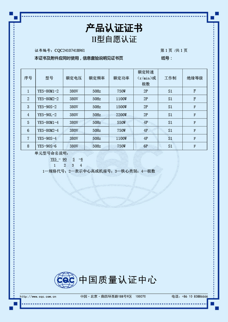 II型自愿認證產品認證證書-YE5